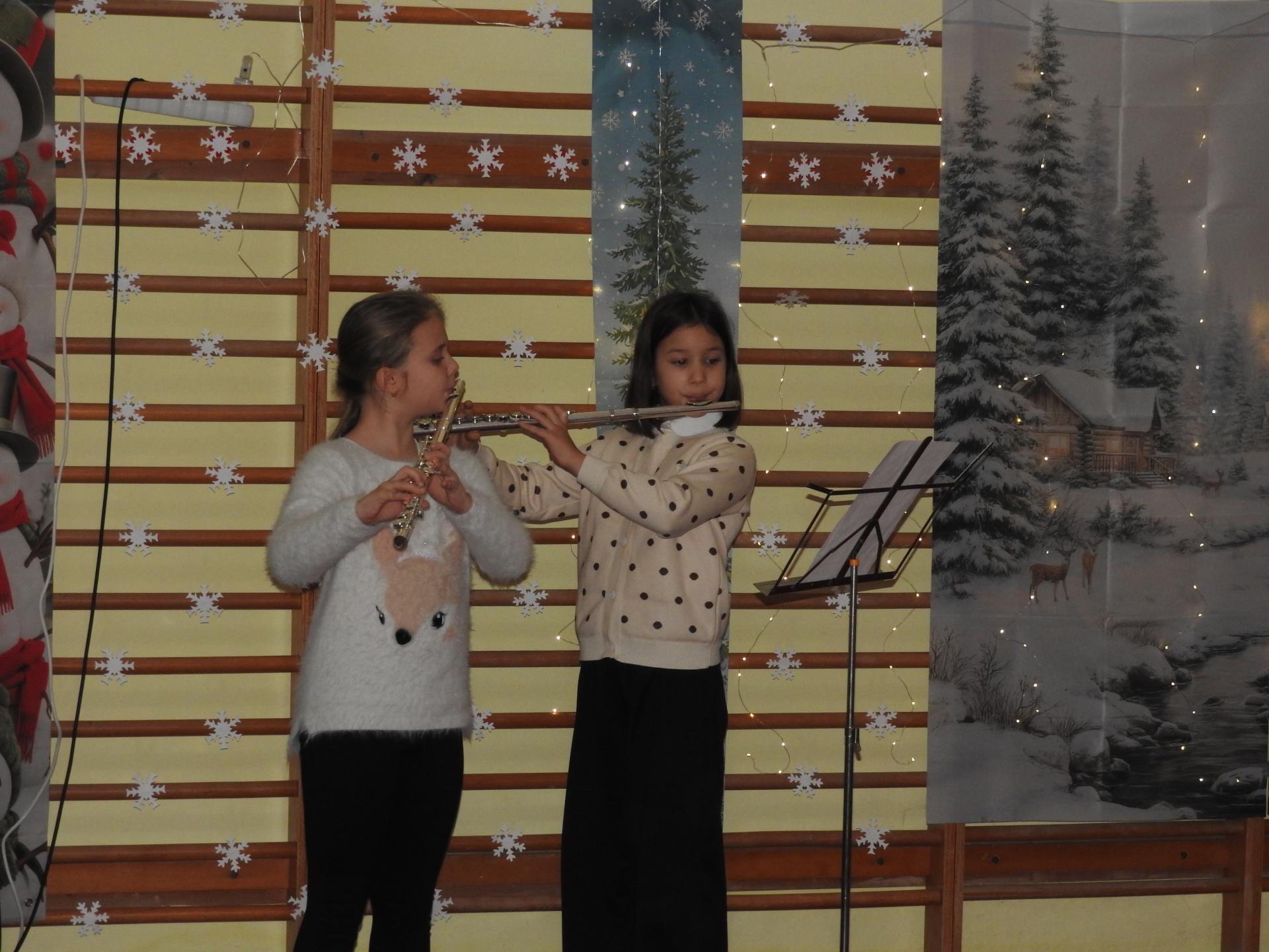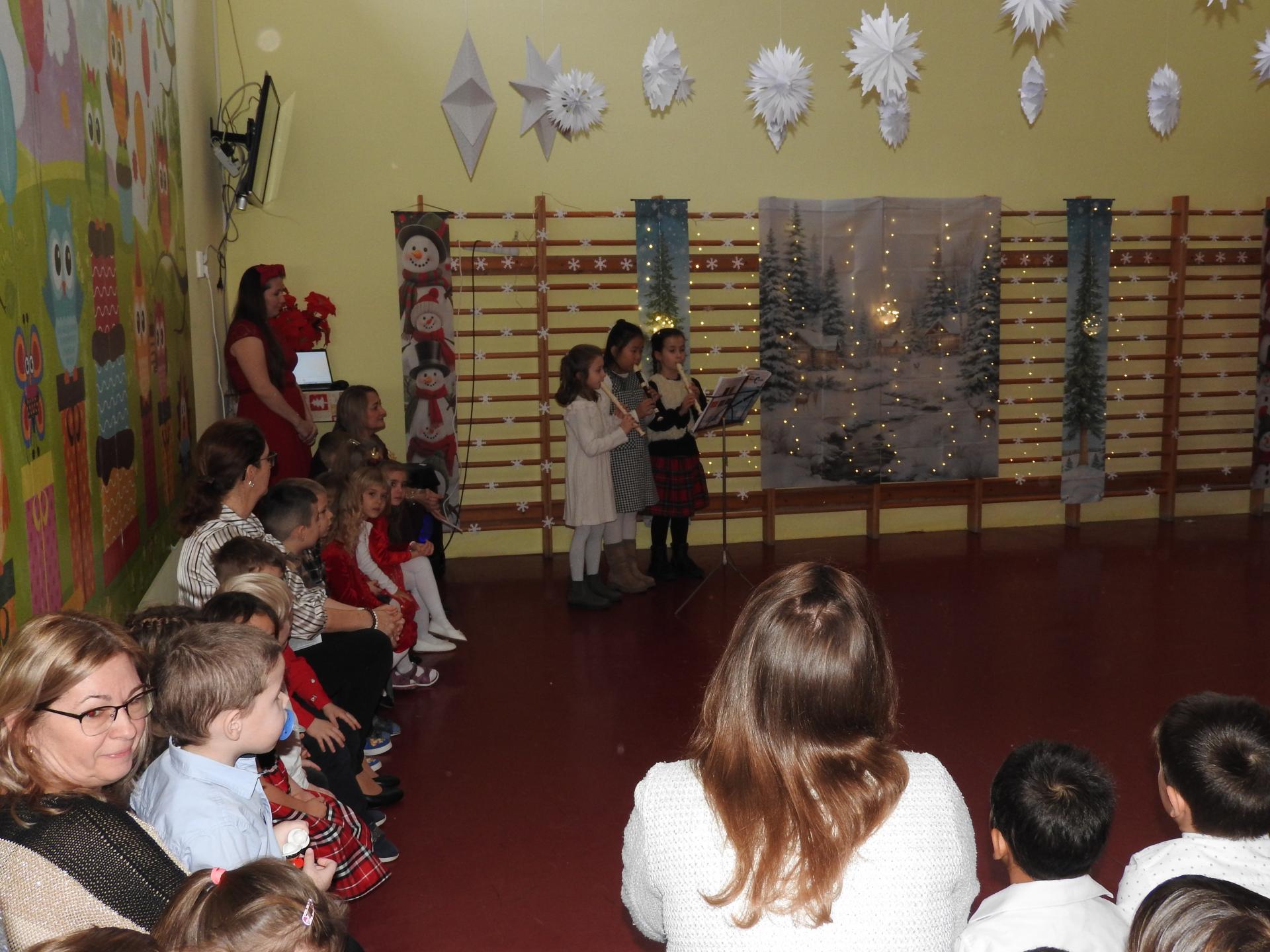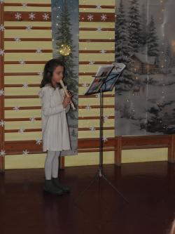 Varga Lujza szólóban is fellépett, majd Zeng Zi Wennel és Horváth Annabellával furulya trióban szerepeltek, Balázs Kata és Balassa Emma fuvola duóval, Nádasdi Eszter tanárnő és Tóth Boglárka klarinét duóval kedveskedett a kis óvodásoknak és alapozták meg az óvodai ünnepi hangulatot a kedves kis karácsonyi dallamokkal. Majd megtekintettük az óvoda Pillangó csoportjának szívhez szóló, aranyos karácsonyi műsorát.