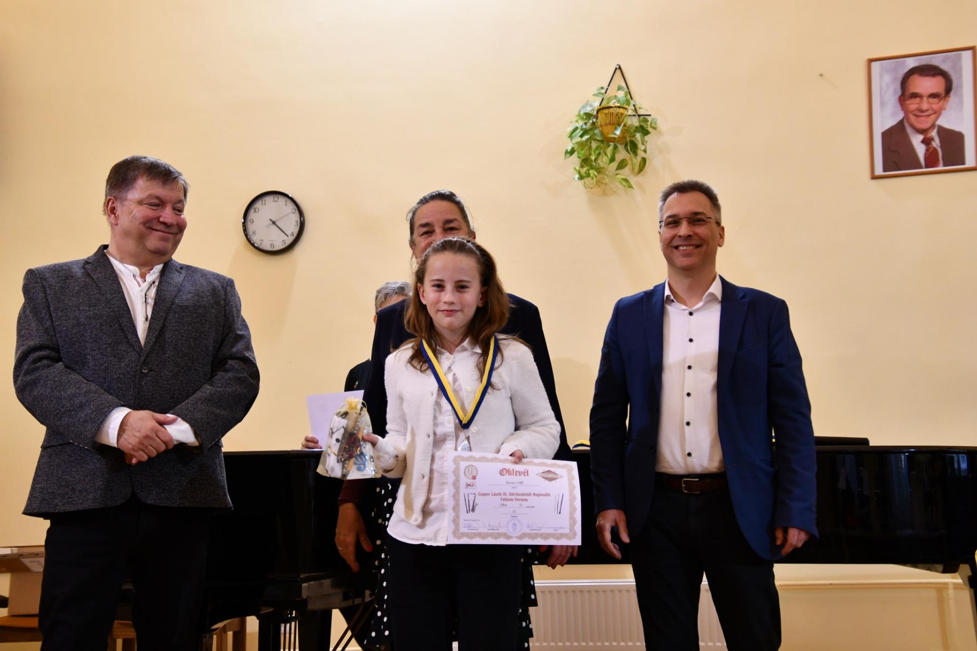 Somogyi Benett - oklevél, felkészítő tanár Nádasdi Eszter, zongorán kísért Cselényiné Erős Enikő,